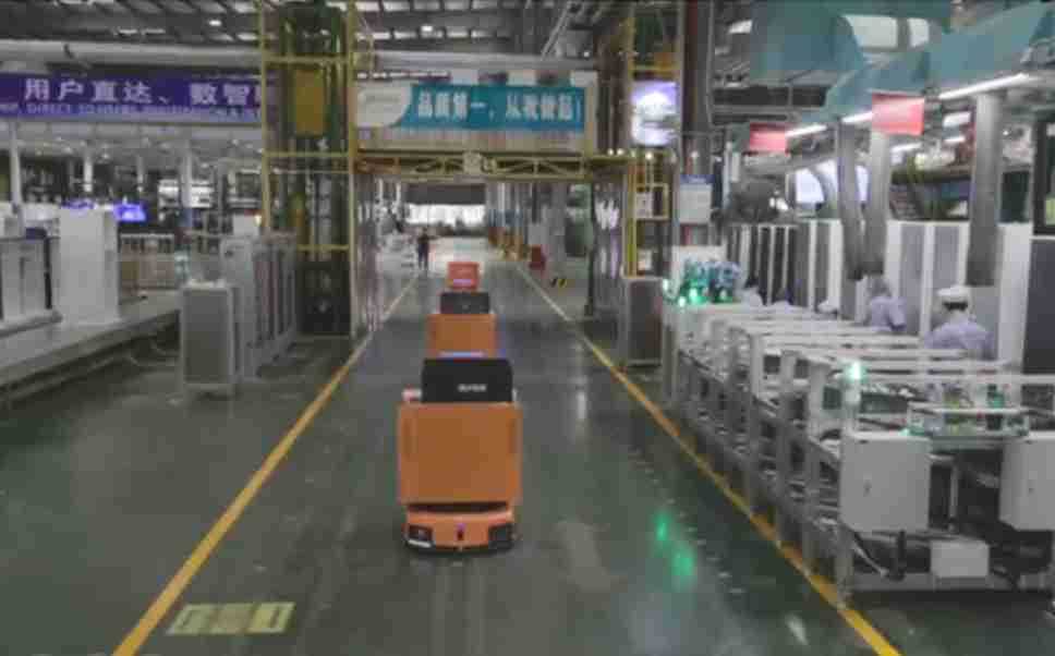 为车载冰箱物流配送打造的智能解决方案,,,包含产中物流通过潜伏举升AMR搬运至线边,,,产后成品物流智能仓储,,,流程包含产中物流智能齐套入库,,,线边安灯叫料AMR智能配送至线边,,,成品入库、、、出库,,,通过无人堆高车机器人,,,,智能仓储管理替代人工作业管理,,实现更高存储、、更高效率、、、更具柔性化的解决方案。。